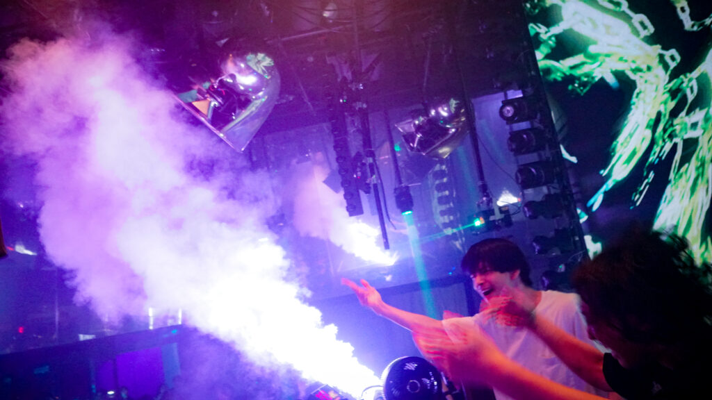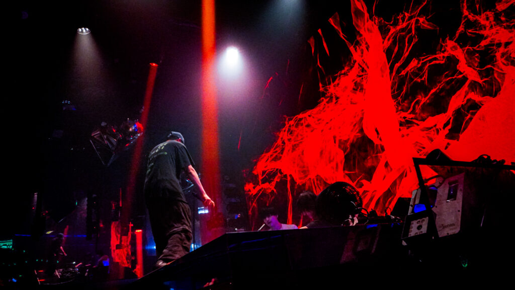 中でも存在感を放ったのはRedsign。緻密な構成と大胆なドロップを織り交ぜたプレイは、鋭さと重さを兼ね備え、フロアを一段と深いグルーヴへ導いた。rejectionは安定感ある重低音で土台を固め、vishnu okunoはフロアのツボを押さえた煽りと選曲で観客を自然に巻き込んでいった。