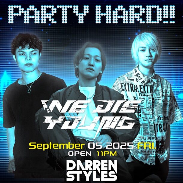 2025年7月17日(Thu)、六本木・Sel Octagon Tokyoで開催された6周年イベントに、WE DIE YOUNG crewが「SPACE LACES」のサポートとして出演した。出演したのは rejection、Redsign、vishnu okuno の3人。