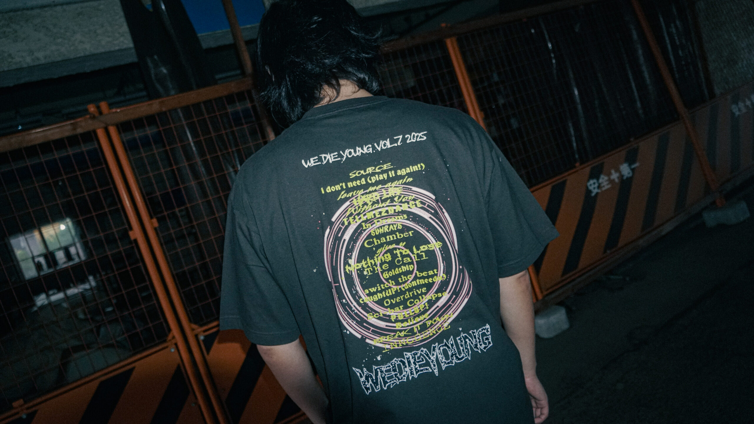 On October 28, 2025, WE DIE YOUNG released new merch! This item features the design of the latest compilation, “WE DIE YOUNG vol.7“ Available in limited quantities — grab yours before it’s gone! WE DIE YOUNG vol.7 Tee [2025] Size: FREE (XL) / ¥4,000