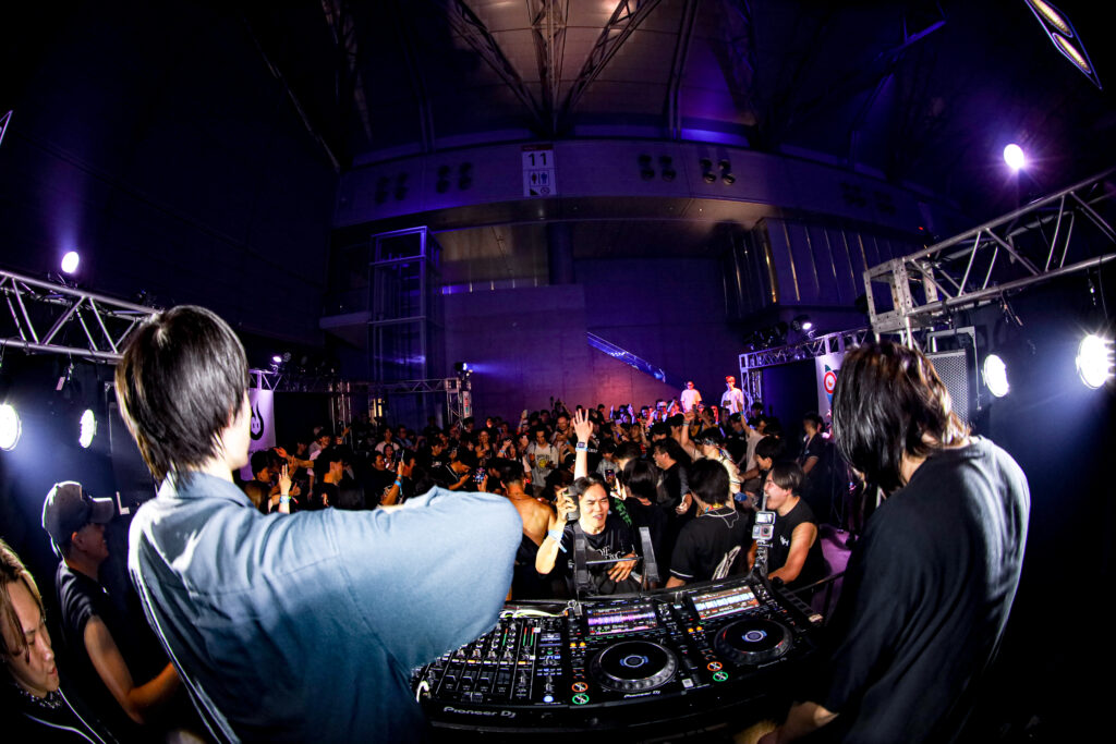 WATARUとWE DIE YOUNGの4人が繰り出すセットは、単なるB2Bに留まらず、LIVEとDJをかけ合わせたような、ストーリー的かつ予測不能な構成を刻み続けた。